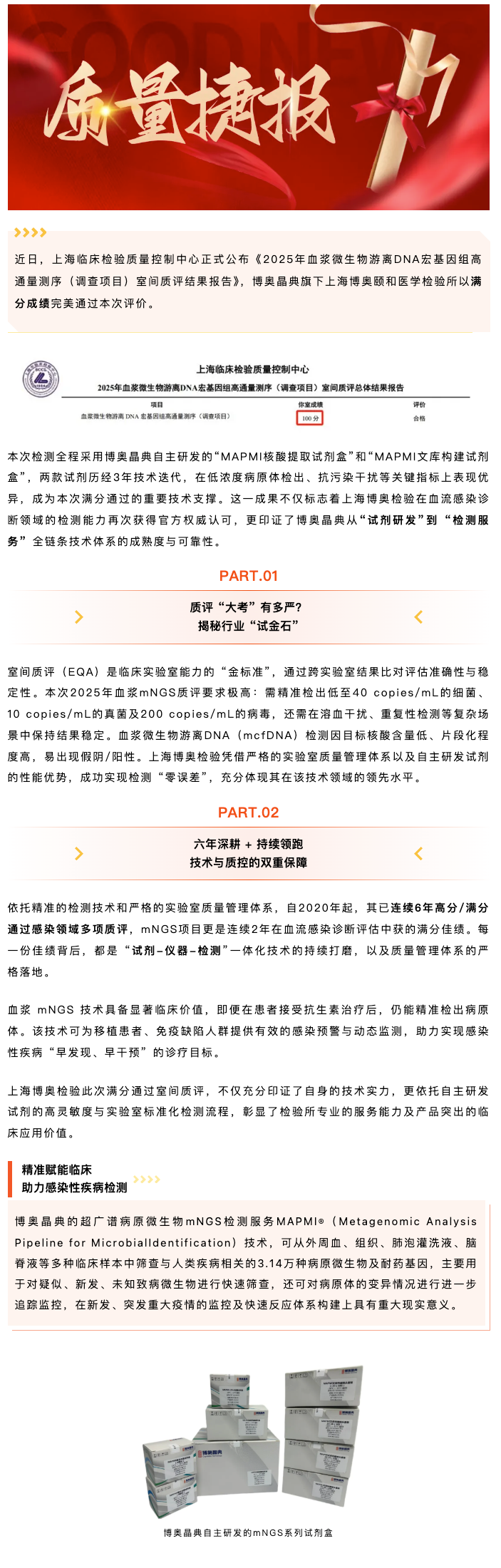 品质加冕!博奥晶典旗下上海博奥检验满分通过2025年血浆mNGS室间质评